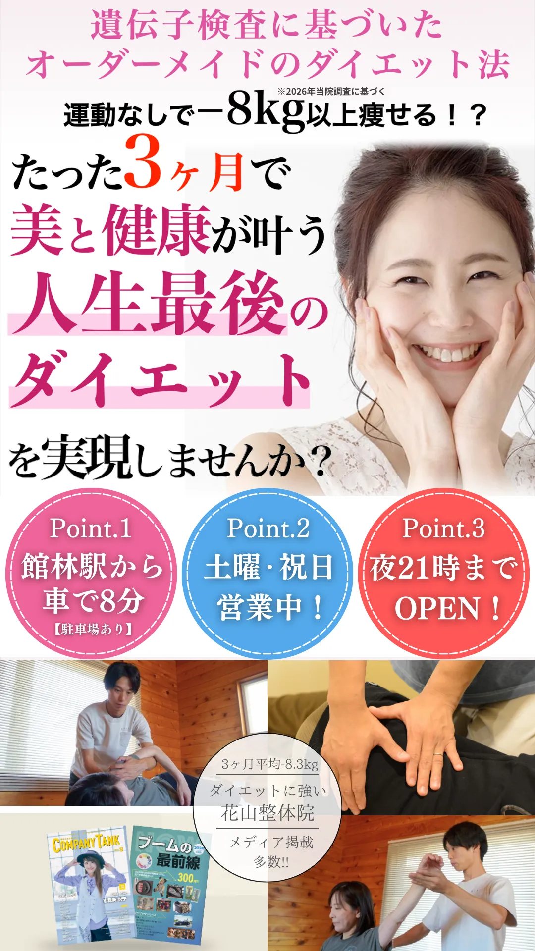 花山整体院では、あなたのダイエットを最初から最後まで責任を持って真摯に向き合い、結果にこだわっていきます。